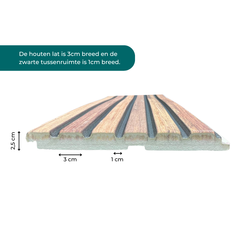 aku Paneel Eps Classic Oak Xl aku Paneel Eps Classic Oak Xl, Is Een Wandpaneel Met Een Houtlook Optiek. Dit Paneel Ziet En Voelt Eruit Als Echt Hout! Echter Is De Onderkant Van Circa 2cm Eps En Daarboven Op Een Harde Toplaag Van Polyesterhars. Dit Allen Maakt Dat Dit Wandpaneel Zéér Eenvoudig Te Bewerken Is. Het Paneel Laat Zich Via De Achterkant Makkelijk Insnijden Met Een Scherp Mes. Dit Wandpaneel Is Nadat Je Een Beschermlaag Aanbrengt Ook Buiten Te Gebruiken. De Polyesterhars Toplaag Is Keihard En Stootbestendig. akoestische Panelen Eps Xl Klassiek Eiken afmeting: 270x72cm (inhoud 3 Panelen Van 270x24cm) Bedekt Een Oppervlakte 270cm X 72cm (dikte 2,5 Centimeter) montage Advies: verlijmen Met paneli Montagelijm (https://paneli.nl/montagelijm-paneli) of Montagelijm Geschikt Voor Eps / Styrofoam Per Tube Montagekit Kunt U 1 Aku Paneel Verlijmen. Voor Buiten Gebruik Adviseren We Iets Meer Te Gebruiken. tip Van De Professional! alvorens De Panelen Zijn Verwerkt, Raden We U Aan Voorzichtig Om Te Gaan Met De Randen En Hoeken Van De Panelen. Indien Het Onverhoopt Tot Kleine Beschadigen Aan De Zijkant/hoeken Komt, Is Dit Zeer Eenvoudig Op Te Lossen. Dit Doet Geen Enkele Afbreuk Aan De Eigenschappen Van Het Product. Leg Op De Achterzijde Van Het Paneel Een Liniaal En Snijdt Met Een Fijn Getande Handzaag Het Door U Gewenste Stuk In Horizontale Of Verticale Richting Af. de Houten Lat Is 3cm Breed En De Zwarte Tussenruimte Is 1cm Breed.