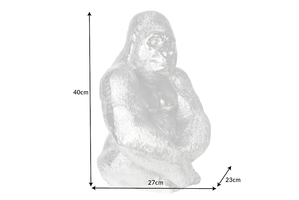 Als u uw sfeer een individueel tintje wilt geven, moet u dit woonaccessoire eens nader bekijken! Onze gorillasculptuur van hoogwaardig aluminium in zilver ziet er bedrieglijk echt uit en is een absoluut hoogtepunt voor je woonruimte. Of het nu op het dressoir, de wandplank of op een bijzettafel staat – het perfecte beeld van de aap verfijnt elke sfeer!