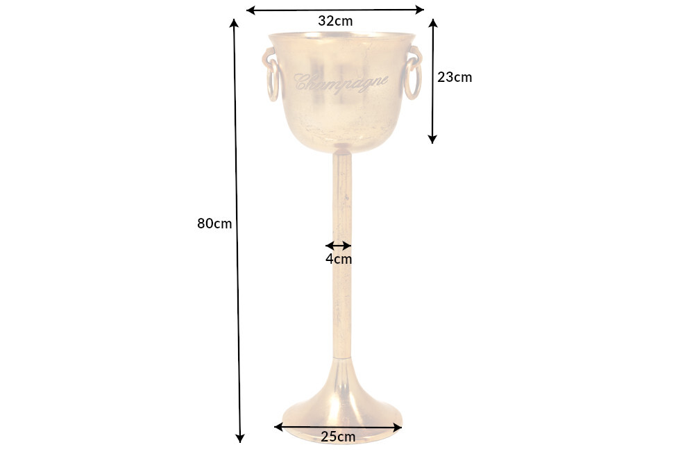 Onze stijlvolle champagnekoeler CHAMPAGNE van hoogwaardig aluminium is zeker een blikvanger in uw sfeer. Wilt u bij speciale gelegenheden een glas champagne drinken, lekker gekoeld? Kies dan voor onze handgemaakte, gouden flessenkoeler met bijzonder hoge voet. Naast de eettafel, in de woonkamer of op het volgende tuinfeest is het woonaccessoire de perfecte metgezel voor een sfeervolle avond.