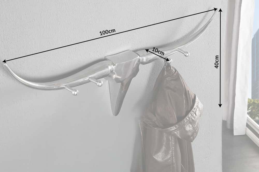 Design kapstok BULL 100cm aluminium wanddecoratie stierenkop – 20076