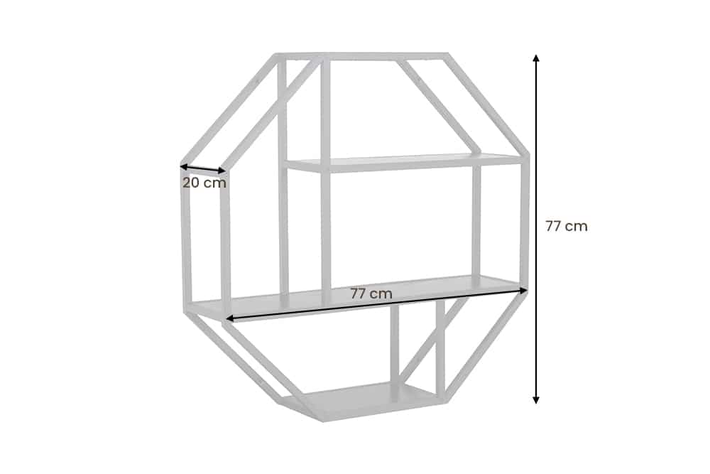 Ontdek het eigentijdse achthoekige wandrek dat op opmerkelijke wijze trendy design en functionaliteit combineert. De planken zijn gemaakt van eersteklas houtmateriaal en worden gekenmerkt door hun aantrekkelijke zwarte essenlook. De harmonieuze symbiose met het robuuste metalen frame in zwart creëert een onvergelijkbaar ontwerp dat de charme van een industriële esthetiek belichaamt in deze ruime plank.