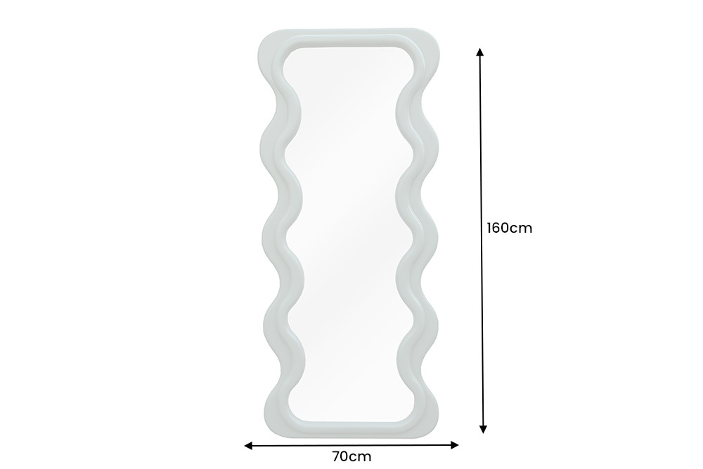 Met de CURVY wandspiegel haal je een echt sieraad in huis! De grote spiegel maakt indruk met een lijst in golfdesign in fris saliegroen. De grote spiegel is een perfect woonaccessoire om elke kamer extra diepte en helderheid te geven. Het gelaagde ontwerp van het frame is een speels detail en de pastelkleur zorgt voor een vriendelijke sfeer – of het nu in de gang of in de slaapkamer is!
