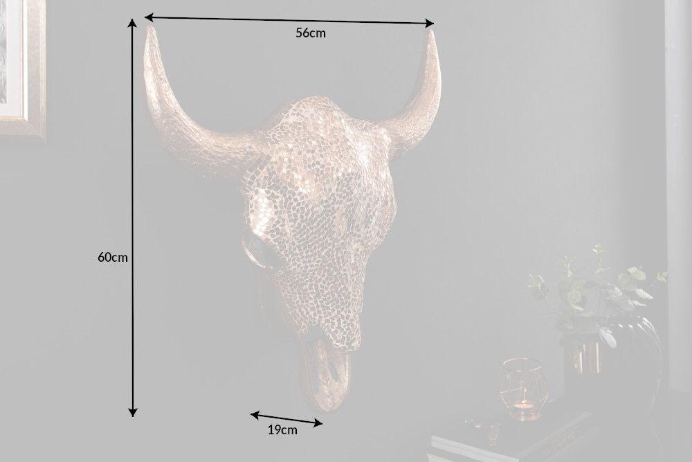 Elegante stierenkop MATADOR 56cm goud met mozaiekversiering wanddecoratie – 39879