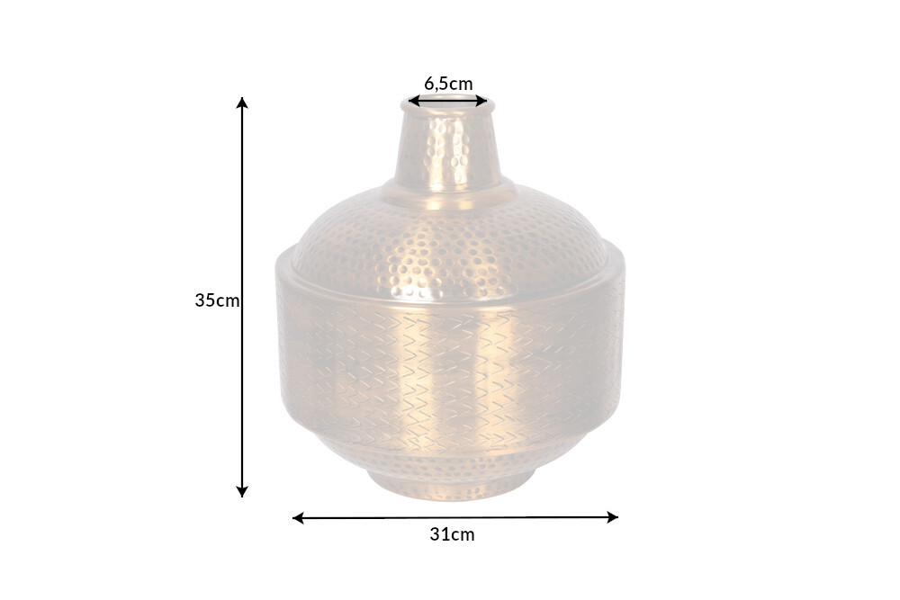 Wij weten het zeker: alleen de juiste accessoires kunnen een interieur perfect maken. Daarom hebben wij voor u onze antieke vaas uit de serie ORIENT in ons assortiment. Het koperkleurige oppervlak is zorgvuldig met de hand vervaardigd met een all-over patroon in een gehamerd ontwerp. Dit geeft de vaas een authentieke antieke uitstraling en lijkt uit een oosters sprookje te komen.