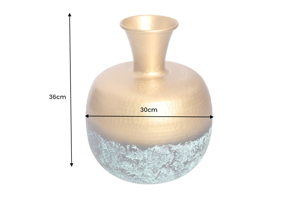 Handgemaakte decoratieve vaas ABSTRACT ORIENT 40cm goud rond metaal patina – 43511