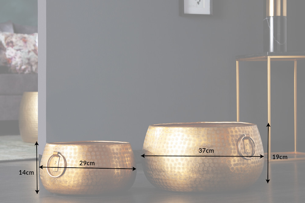 Handgemaakte schalenset van 2 ORIENT gouden bloempotten in gehamerd ontwerp – 40910