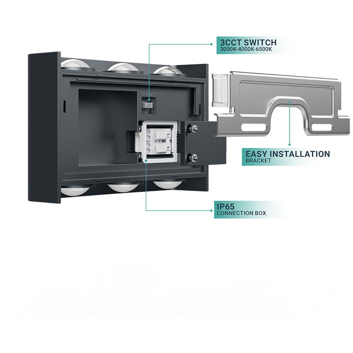 * ip65 Waterdicht: Geschikt Voor Zowel Binnen- Als Buitentoepassingen Dankzij De Ip65-classificatie. * up&Down Verlichting: Verlicht Muren Zowel Naar Boven Als Naar Beneden Voor Een Stijlvol Effect. * verstelbare Kleurtemperatuur: Kies Uit 3000k, 4000k Of 6500k Voor De Perfecte Sfeer. * energiezuinig: Verbruikt Slechts 6w Met Een Krachtige Lichtopbrengst Van 480lm. * modern Design: Strakke, Rechthoekige Vormgeving In Een Elegante Zwarte Afwerking. * duurzaam Materiaal: Gemaakt Van Hoogwaardige Materialen Voor Een Lange Levensduur. * veelzijdig Gebruik: Ideaal Voor Zowel Residentiële Als Commerciële Omgevingen. * eenvoudige Installatie: Ontworpen Voor Een Snelle En Gemakkelijke Montage. * onderhoudsvrij: Dankzij De Duurzame Led-technologie Is Onderhoud Minimaal. * milieuvriendelijk: Bevat Geen Schadelijke Stoffen En Is Recyclebaar. * consistente Helderheid: Biedt Stabiele Verlichting Zonder Flikkeringen. * veiligheid Gegarandeerd: Voldoet Aan Alle Veiligheidsnormen En -voorschriften. * ruime Toepassingsmogelijkheden: Perfect Voor Het Verlichten Van Muren, Gevels En Gangen. * robuuste Constructie: Bestand Tegen Diverse Weersomstandigheden, Inclusief Regen En Stof.