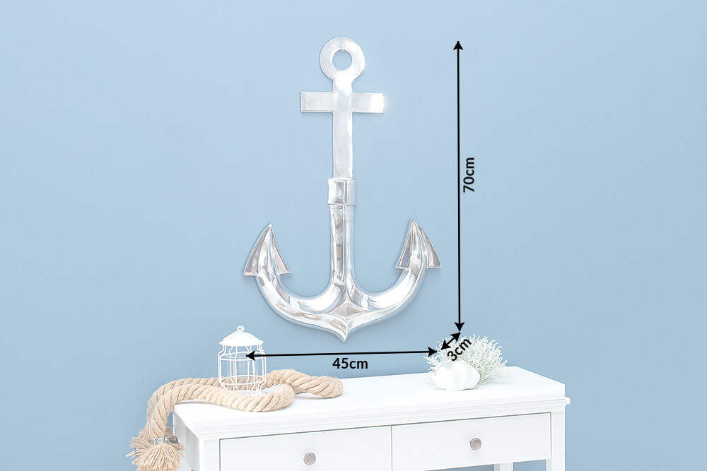 Maritieme wanddecoratie SEVEN SEAS 70cm zilver 3D anker – 38600