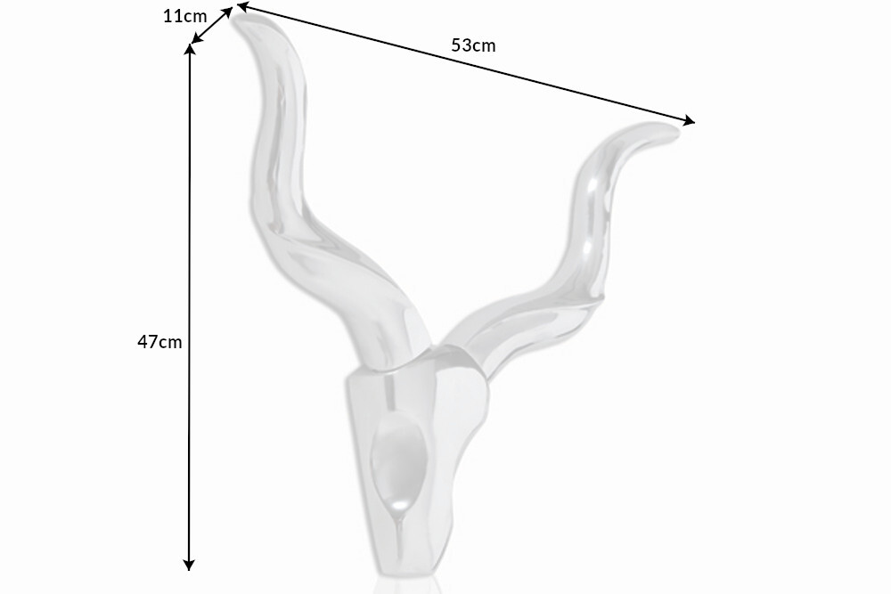 De stijlvolle elegantie van het hoogwaardige aluminium en het gebogen design van de hoorns laten de feestzaal, woonkamer en eetkamer in een geheel nieuwe sfeer schitteren. De STYLE ROCKS wanddecoratie vindt u in andere maten in de onlineshop van Riess-Ambiente.
