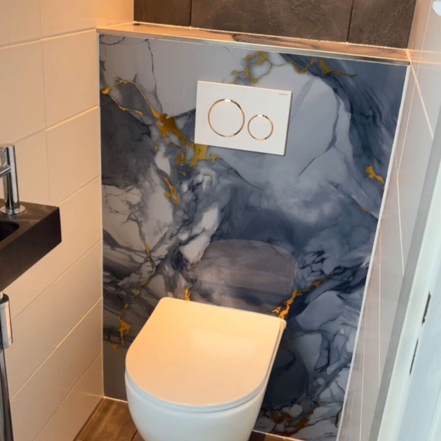 pvc Marmer Paneel Harmony Gold Glans dit Exclusieve Marmeren Wandpaneel Combineert Op Elegante Wijze Diepe Grijstinten, Helder Zilverwit En Verfijnde Goudaccenten. De Dramatische Mix Van donkerblauwgrijs, lichtgrijs, En marmerachtig Wit Zorgt Voor Een Stijlvolle En Tijdloze Uitstraling Die In Elk Interieur Tot Zijn Recht Komt. de goudkleurige Aders Lopen Organisch Over Het Oppervlak En Geven Het Paneel Een Luxueuze En Unieke Uitstraling. Deze Gouden Accenten Brengen Warmte En Verfijning In Het Geheel En Maken Het Wandpaneel Een Echte Blikvanger In Iedere Ruimte. of U Nu Kiest Voor Een Chique badkamerwand, Een Moderne keukenachterwand Of Een Stijlvolle statement Muur In De Woonkamer, Dit Pvc Marmer Wandpaneel Met Grijze En Gouden Marmerlook Tilt Elk Interieur Naar Een Hoger Niveau. Dankzij Het Duurzame En Onderhoudsvriendelijke Materiaal Is Het Bovendien Een PraktischeÉn Esthetische Keuze. met 100% Waterbestendigheid Zijn Deze Platen Perfect Voor Badkamers Of Douches. Ze Zijn Slechts 3 Mm Dik En Ideaal Voor Alle Binnenruimtes. De Wandpanelen Zijn Makkelijk Op Maat Te Maken En Direct Over Bestaande Tegels Te Plaatsen. onze Marmer Wandpanelen Vereisen Geen Onderhoud, In Tegenstelling Tot Echt Marmer. Terwijl Echt Marmer Na Verloop Van Tijd Vergeelt En Verdoft, Behouden Onze Wandpanelen Altijd Hun Hoogglans Afwerking. Dit Maakt Ze Zowel Mooier Als Duurzamer. deze Marmer Wandpanelen Zijn Perfect Voor Natte Ruimtes Zoals Badkamers, Douchecabines, Toiletten En Keukens, Maar Ook Voor Slaapkamers En Woonkamers. De Decoratieve Wandpanelen Van Paneli Zijn Gemaakt Van Pvc En Hebben Een Natuurlijke Glans, Net Zoals Echte Marmeren Tegels. belangrijkste Kenmerken: ✓ 100% Watervast ✓ Kras- En Stootbestendig ✓ Bevatten Geen Weekmakers ✓ Zetten Niet Uit En Krimpen Niet installatie Is Zeer Eenvoudig. Voor De Montage Aan De Muur Raden We 2 À 3 Tubes montagelijm (https://paneli.nl/montagelijm-paneli/) Van Paneli Aan. Gebruik Sanitairkit Om De Hoeken In De Badkamer Af Te Kitten. Snijd Ze Makkelijk Op Maat Met Een Stanleymes EnBevestig Ze Met Onze Speciaal Ontwikkelde montagelijm (https://paneli.nl/montagelijm-paneli/) Over Bestaande Tegels Of Grove Muren Plaatsen.