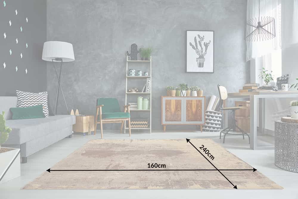 Vintage katoenen vloerkleed MODERN ART 240x160cm zandbruin used look – 38259