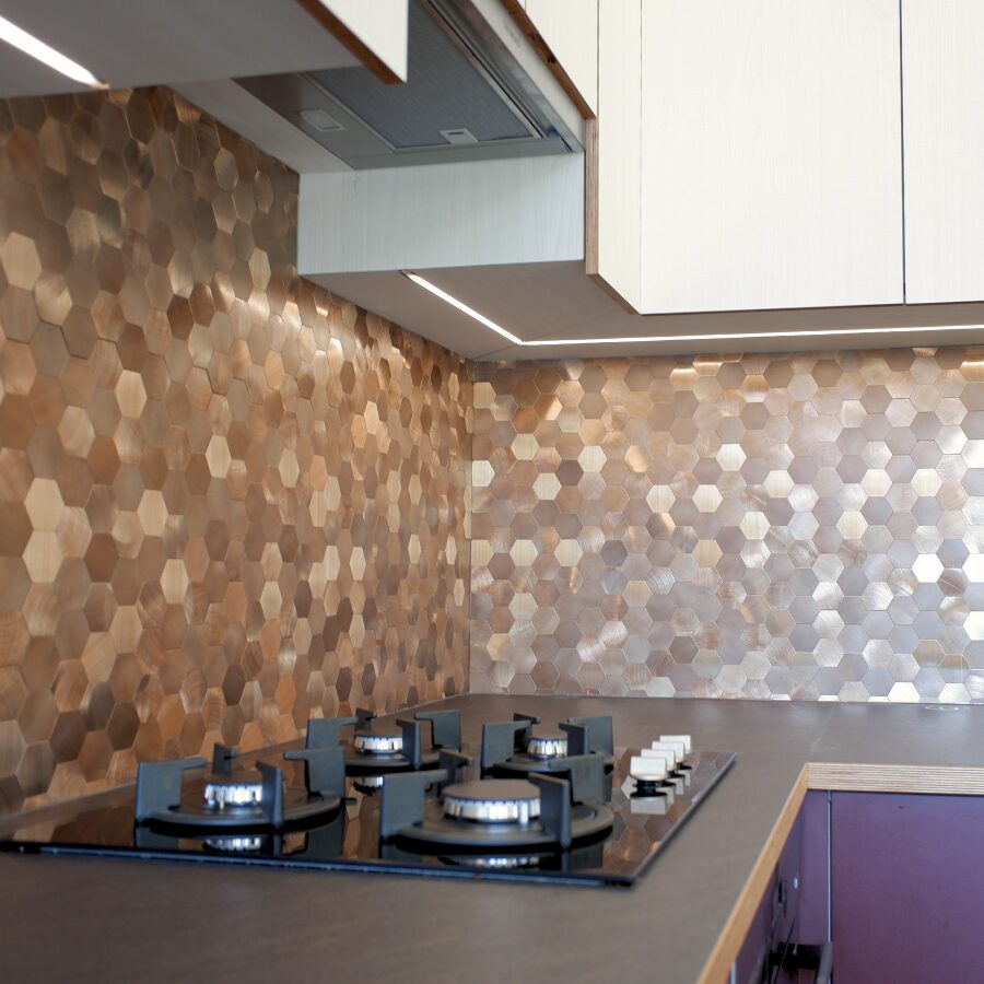 zelfklevend Mozaïek Hexagon Brons Koper bij Paneli Houden We Van Vernieuwing En De Nieuwste Trends. Daarom Hebben We Gekozen Voor Een Exclusieve Tegelmozaiek Model. Deze Koper / Bronsachtige Tegel Is In Het Echt Nóg Mooier. Op De Foto Is Het Moeilijk Te Zien, Maar Deze Tegel Heeft Koperen, Bronzen En Gouden Tinten Die Uitstekend Passen Bij De Huidige Trend. Zelfklevende Mozaïek Steenstrips Zijn Ideaal Voor Elke Ruimte Binnenshuis. Deze Zelfklevende Tegels Zijn Niet Te Onderscheiden Van Echte Tegels. Doordat Dit Product Haarzelf Zo Makkelijk Laat Monteren, Zijn Dure Tegels Nu Echt Verleden Tijd. De Mozaïek Steenstrips Zijn Voorzien Van Een Zelfklevende Achterlaag Welke Direct Hecht Op Vlakke Wanden Of Oude Tegels. Voor Muren Met Een Grove Structuur Zoals Spachtelputz Of Granol Adviseren We Om Montagelijm Van Paneli Te Gebruiken Als Extra Kleefkracht. Deze Steenstrips Worden Veelal Gebruikt AlsAccentmuren Zoals Keukenwanden, Toiletwanden En Badkamerwanden ( De Ruimte Achter De Spiegel) Kortom Een Fantastisch Product Voor Je Interieur. Wil Je Meer Weten? Bestel Een Monster Of Kom Langs In Onze Showroom. handig Om Te Weten; Deze Zelfklevende Mozaiek Tegels Kan Je Direct Over Je Oude Tegels Plakken, Maar Ook Over Muren Met Behang, Granol Of Spachtelputz. Bij Oneffen Muren Raden We Wel Aan Om Extra montagelijm Van Paneli (https://paneli.nl/montagelijm-paneli/) Te Gebruiken. Schoonmaken Van De Zelfklevende Mozaiek Tegels Doe Je Met Milde Schoonmaakmiddelen En De Zachte Kant Van EenSpons. montagetip; * begin Nooit Strak Tegen Een Wand Aan, Maar Houd Altijd 1 A 2mm Ruimte. Een Muur Of Een Aanrecht Is Namelijk Nooit 100% Recht. * verwijder Niet Gelijk De Hele Vel Van De Stickerlaag, Maar Eerst De Helft En Kijk Of Het Goed Past. Hierdoor Kan Je De Tegel Nog Los Krijgen,Mocht Het Niet Passen Of Niet Goed Zitten. * plaats De Opvolgende Tegel Zo Strak Mogelijk Tegen De Eerder Geplaatste Tegel Aan, Hoe Harder Je Tegen De Eerder Bevestigde Tegel Drukt, Hoe Mooier Het Resultaat. kom In De Winkel Kijken! paneli Heeft Ook Een Winkel In Barendrecht. In Onze Winkel KanJe Al Onze Producten Bekijken En Eventueel Direct Meenemen.