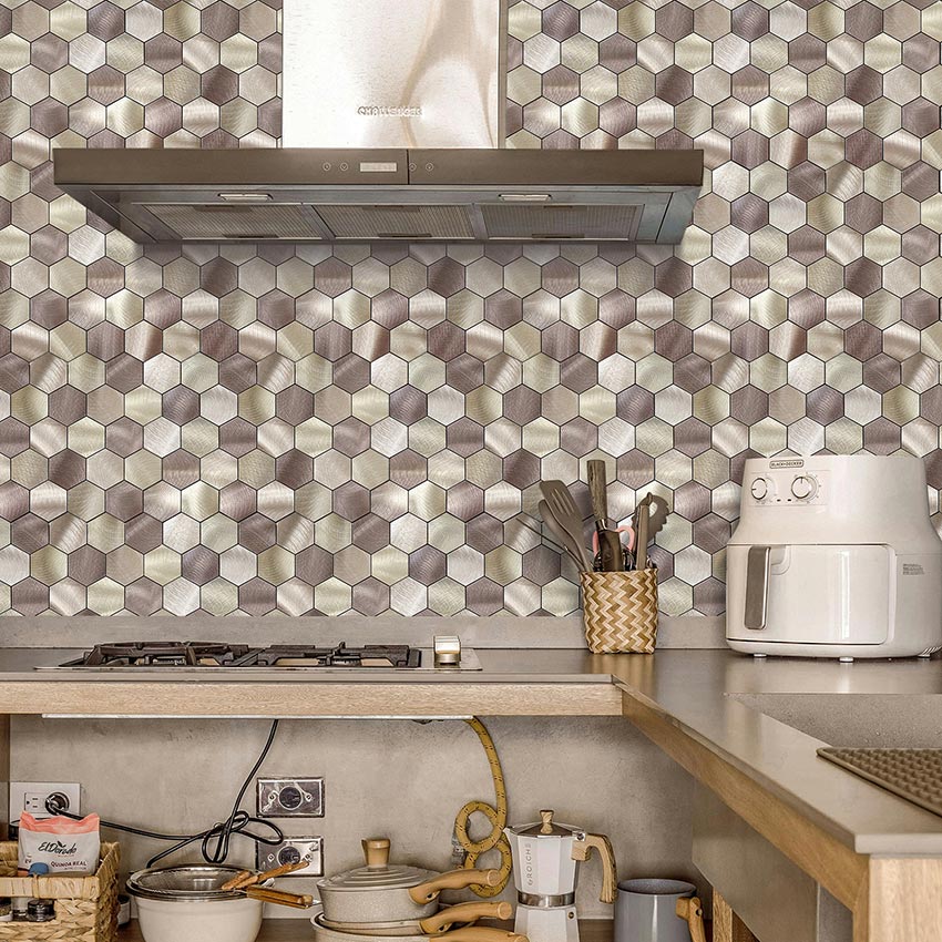 Zelfklevend Mozaïek Hexagon Champagne – 29.5 cm x 29.5 cm x 0.4 cm | 0.5 kg | Paneli zelfklevende steenstrips